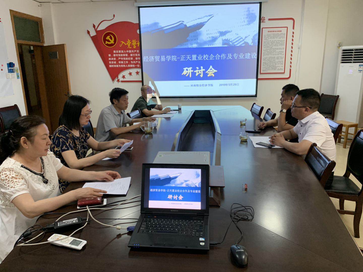 2019年5月29日v站体育官网与正天置业校企合作及专业建设研讨会如期在v站体育官网会议室召开。参会人员有v站体育官网牛建绥书记、李光院长、田景丽副书记、高敏副院长、谭晓峰老师和正天置业的两位领导李总经理和高副总经理。双方单位领导围绕校企合作及专业建设展开了讨论。