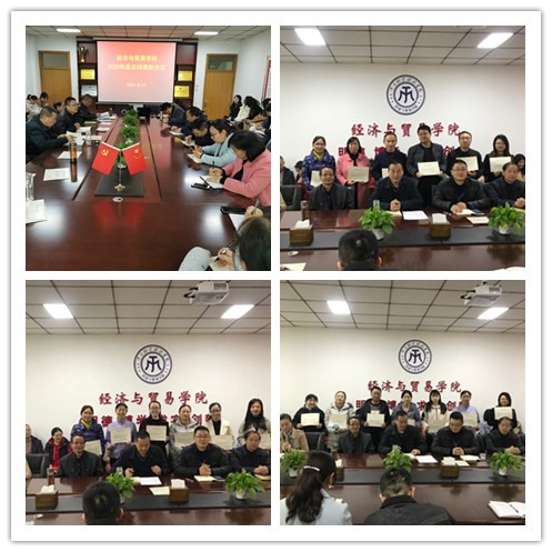 院长李光宣读了学院2020年度表彰决定。与会领导分别为教学质量奖9人、课堂教学先进个人9人、科研先进个人7人、党务工作先进个人7人、学生工作先进个人3人、教学服务先进个人2人、学院优秀工会会员4人、学院巾帼建功先进个人3人颁发了证书。李院长向获得荣誉的教师表示祝贺,希望受到表彰的个人要谦虚谨慎、发扬成绩、再接再厉,同时,号召全体教师向受表彰的个人学习,踏实工作、团结协作、开拓进取,为学院的发展做出更大的贡献。