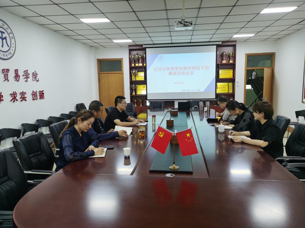 为进一步落实全面从严治党要求,加强党员干部廉洁从政意识,8月29日下午,v站体育官网组织新提任的3名科级干部在英才校区教学楼327会议室开展集体廉政谈话。学院党委书记张松刚、院长李光、党委副书记贾艳艳参加了会议。
