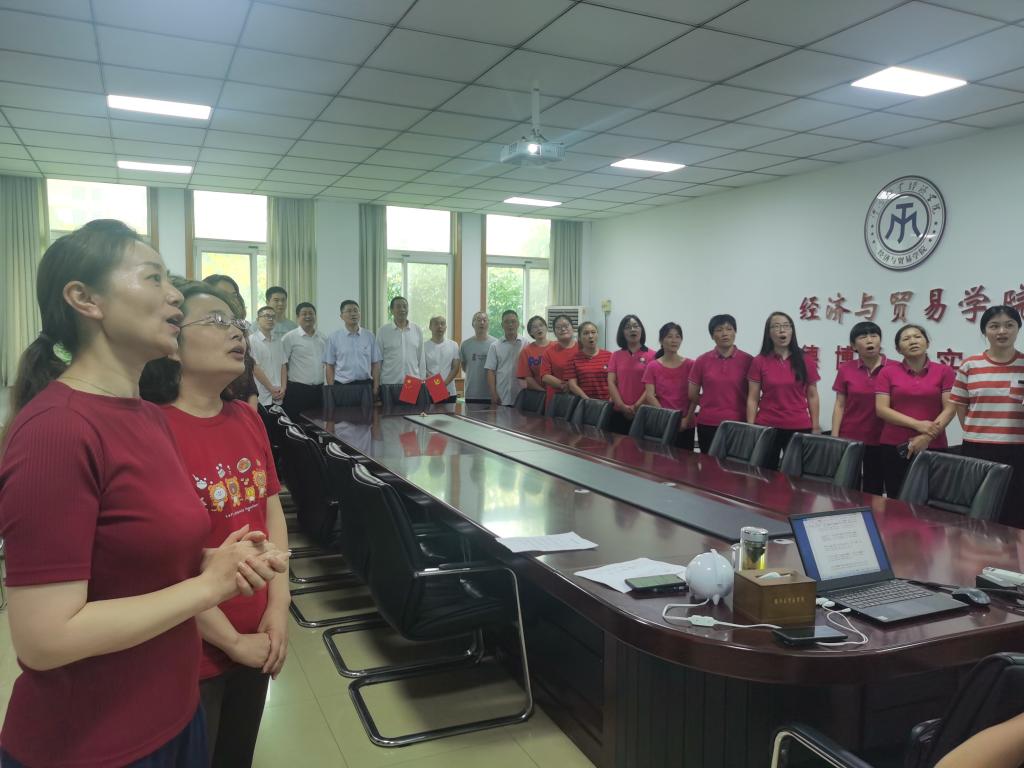9月8日下午,为迎接学校建校65周年校庆,进一步激发师生员工的爱校荣校情怀,v站体育官网分别在英才校区教学楼327会议室和教学楼旁的九龙壁广场等标志性建筑附近积极组织教职工开展以“校歌嘹亮 唱响未来”为主题的《河南牧业经济学院校歌》传唱活动。
