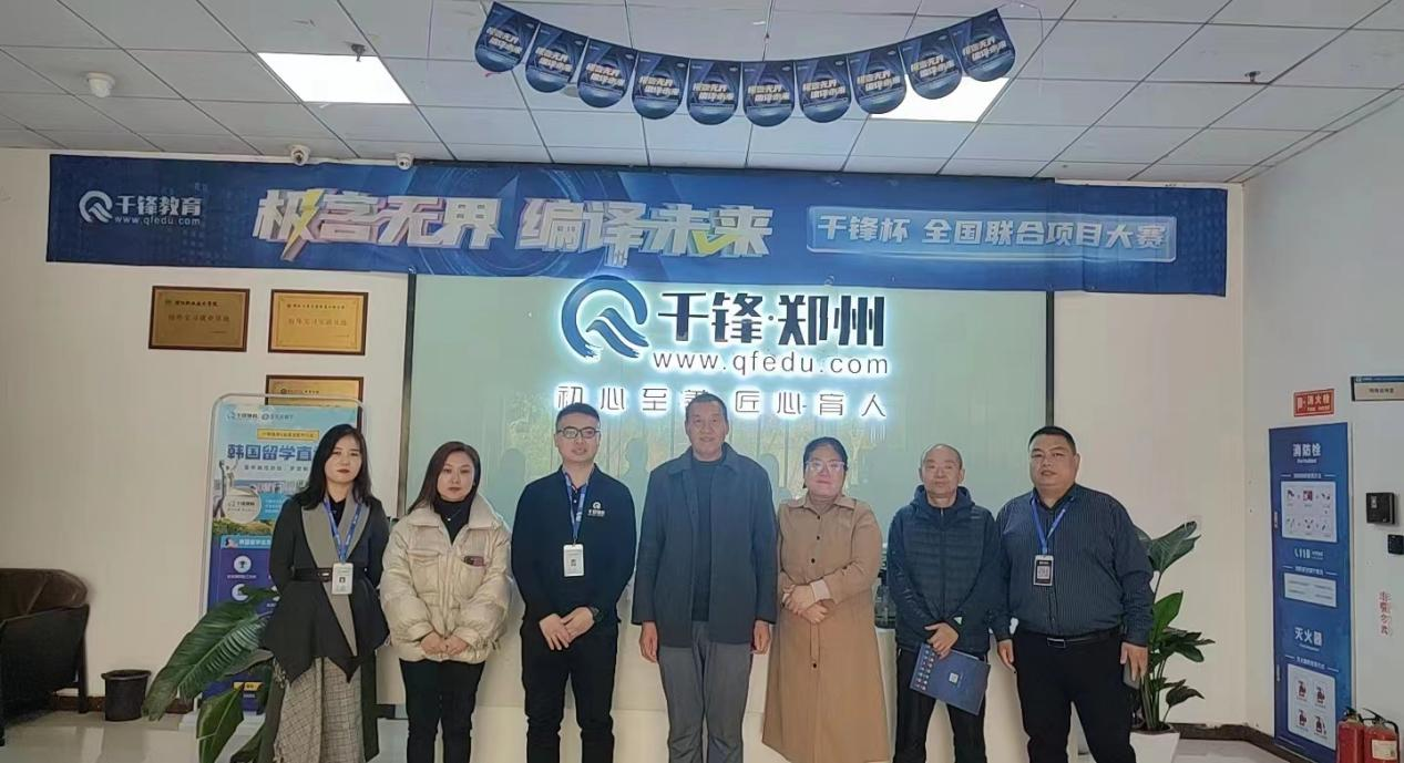 2023年3月27日,河南牧业经济学院v站体育官网院长李光、商务经济学教研室主任郑泽华,课程负责人谭晓峰老师和董涛老师,到千锋教育郑州分校访企拓岗并洽谈产学研合作事宜,受到千锋郑州校方热情接待。双方围绕人才培养,产教融合,专业共建,课程共建,科研项目合作,共建教材,师资支持开展了深度合作洽谈。千锋郑州校区吕志轩校长,千锋郑州院校区域经理曹忠方,企业合作部主管苏晓明,学管导师梁丽红进行了接待与洽谈。