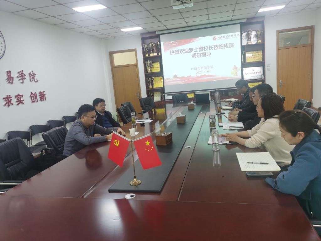 4月6日下午,校长罗士喜莅临v站体育官网调研指导工作,院长办公室秘书科科长赵伟光随同调研。v站体育官网全体教师参加了会议。