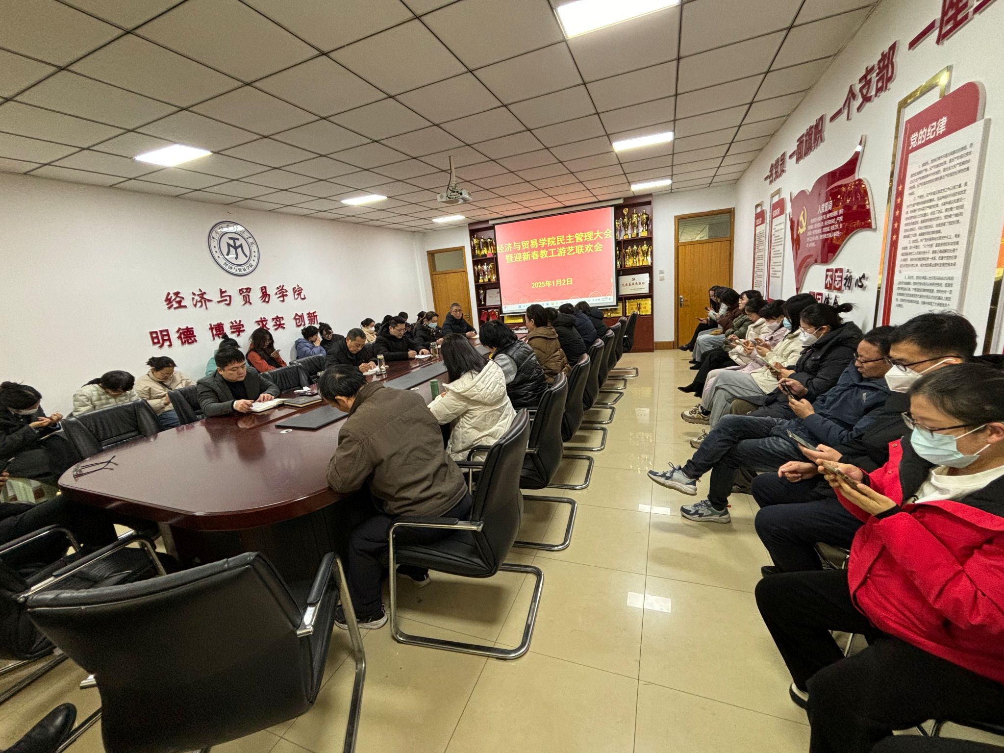 为全面总结工作经验,谋划新一年工作举措,充分发挥民主管理大会的职能作用,让教职工积极参与学院民主管理,推动v站体育官网民主管理工作提质增效,1月2日下午,v站体育官网在英才校区教学办办公楼327会议室召开2024年度民主管理大会,共话2024年事业进展,共商2025年发展大计。学院全体教职工参加会议,大会由学院党委书记张松刚主持。