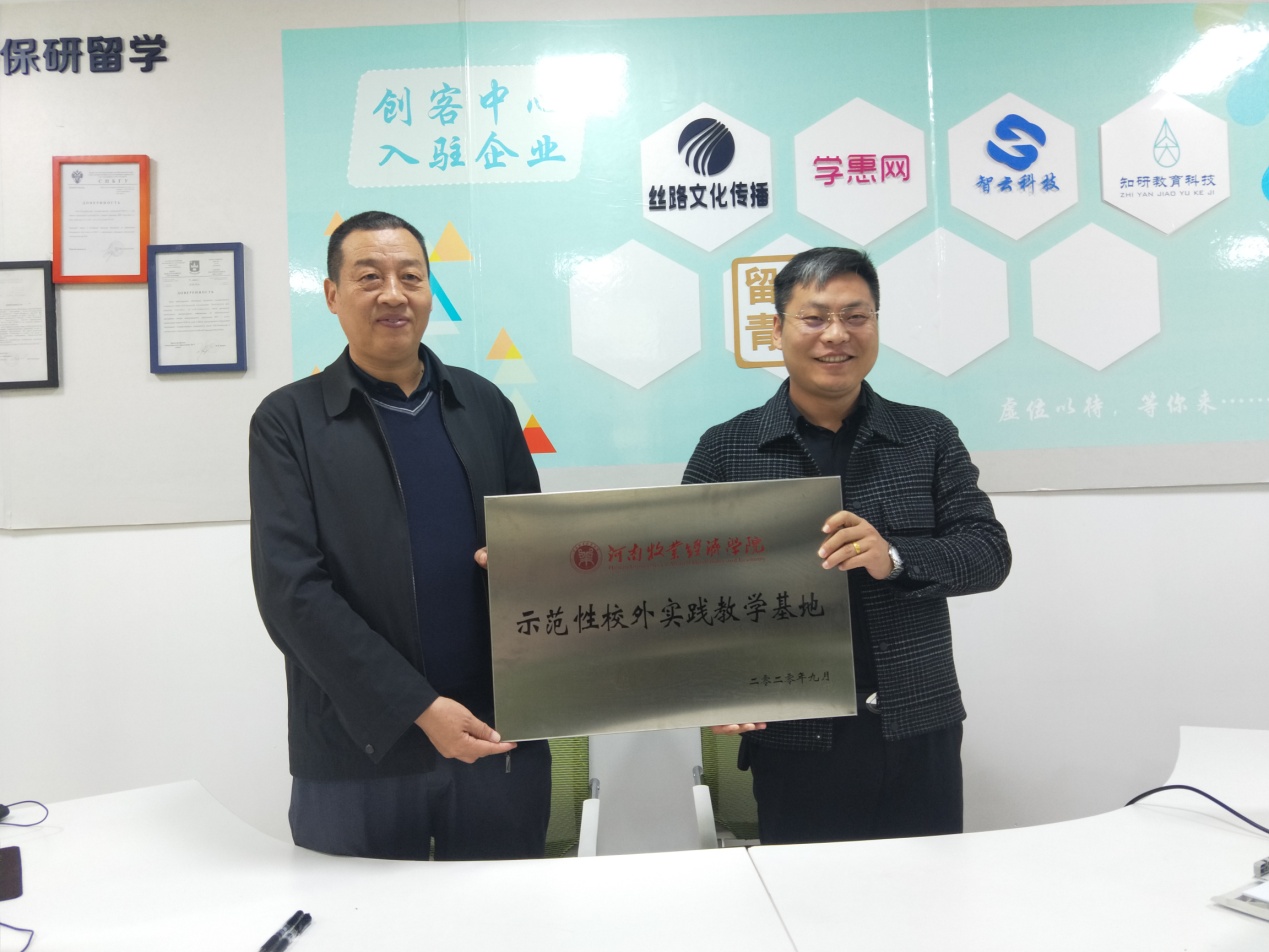 2020年11月11日上午,经济与贸易院长李光教授代表学校在英才校区教学办公楼325,为v站体育官网校企合作企业河南澳得电子商务有限公司举行河南牧业经济学院示范性校外实践教学基地授牌仪式。河南澳得电子商务有限公司董事长杨高飞、人力资源经理、办公室主任及v站体育官网党委书记张松刚、副院长杜玲、跨境电商教研室主任王建植等参加了授牌仪式。