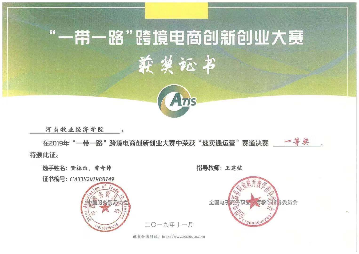 2019年12月15日,2019年“一带一路”跨境电商创新创业大赛速卖通赛道决赛成绩揭晓,v站体育官网有五支队伍参赛,在v站体育官网王建植老师和工商管理学院张滢老师指导下并分别获得全国速卖通赛道决赛一等奖两项、二等奖两项、三等奖一项,共计五个奖项。这五支获奖的团队的学生来自16级国际经济与贸易本科专业,获奖团队的名称分别是锦鲤队、奇袭队、winner和哥谭阿卡姆和一甲小队。