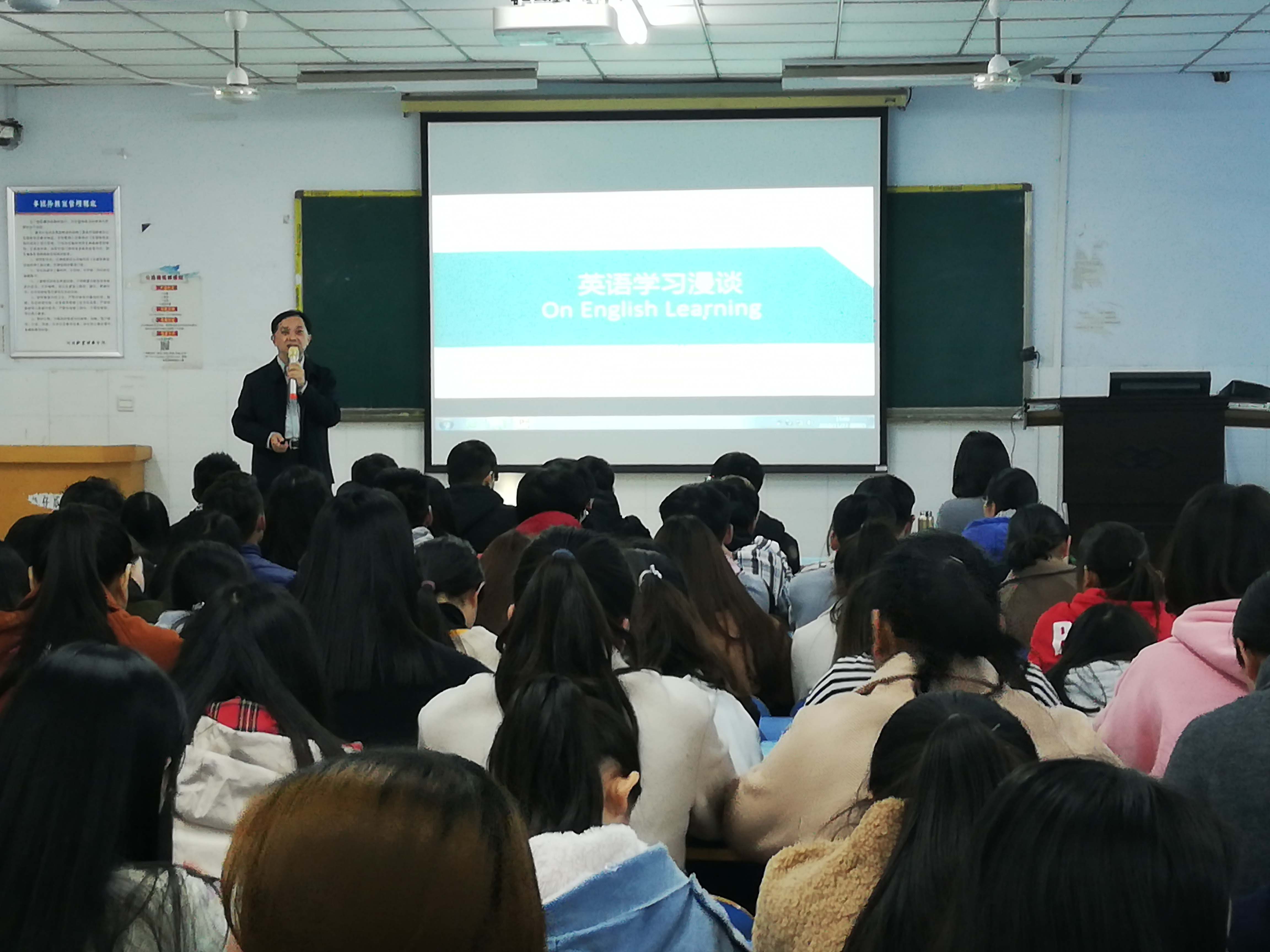 2018年11月22日下午,经济贸易学院在E305教室举办以“英语学习漫谈”为主题的讲座,主讲人为河南财经政法大学国际商务专业硕士生导师白凯教授,经贸学院2017级全体学生聆听了此次讲座。