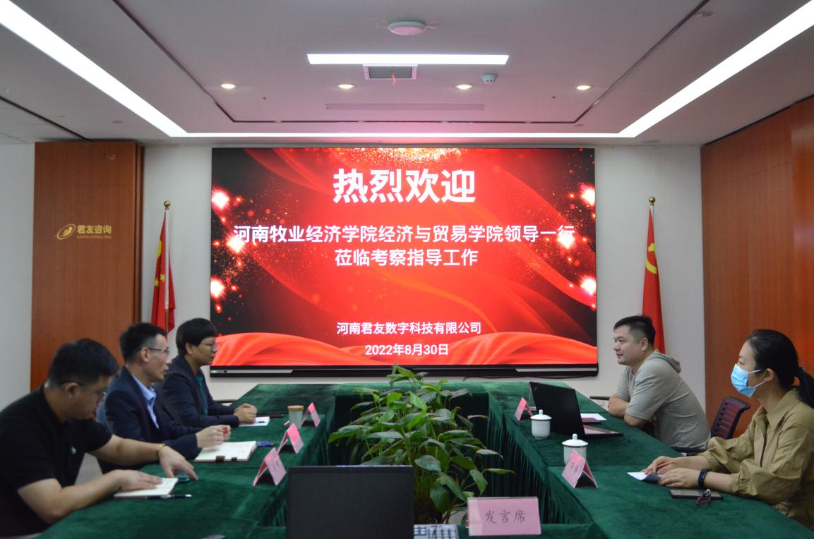 2022年8月30日,v站体育官网副院长梅星星、农业经济教研室主任吴静一行赴河南君友数字科技有限公司就深化校企合作进行磋商交流。