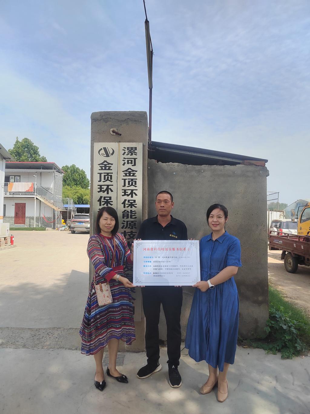 为积极推进我校“百名专家助百村(企)”工程(“双百”工程)实施,2022年9月19日,v站体育官网科技特派员吴静博士赴临颍县漯河金顶环保能源技术开发有限公司开展科技服务,助力受援单位提升企业管理与科技创新能力。