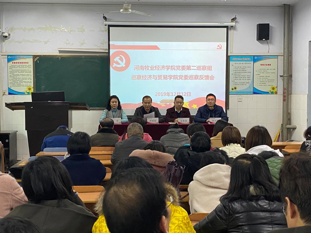 按照校党委巡察工作部署,2019年12月12日下午,校党委第二巡察组巡察v站体育官网巡察反馈会在英才校区教学楼A102室召开。学校第二巡察组组长顾国超、副组长赵贺然、成员梁芩、狄波出席会议,经贸学院领导班子成员及学院全体教师参加会议,会议由经贸学院党委书记张松刚主持。