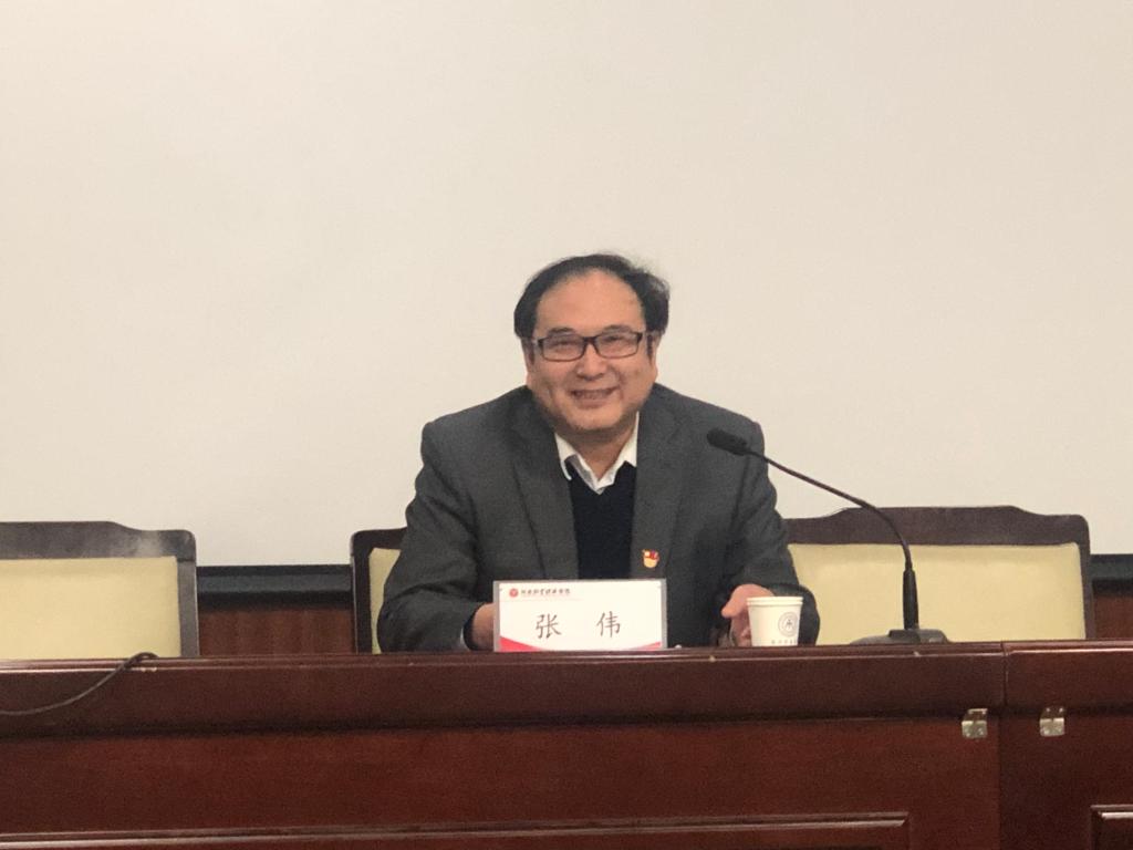 11月21日下午,按照我校“不忘初心、牢记使命”主题教育工作总体安排,张伟副校长以《新中国成立70周年辉煌成就》为题,在英才校区行政楼二楼东会议室作主题教育专题党课报告,v站体育官网全体教师参加报告会,会议由学院党委书记张松刚主持。