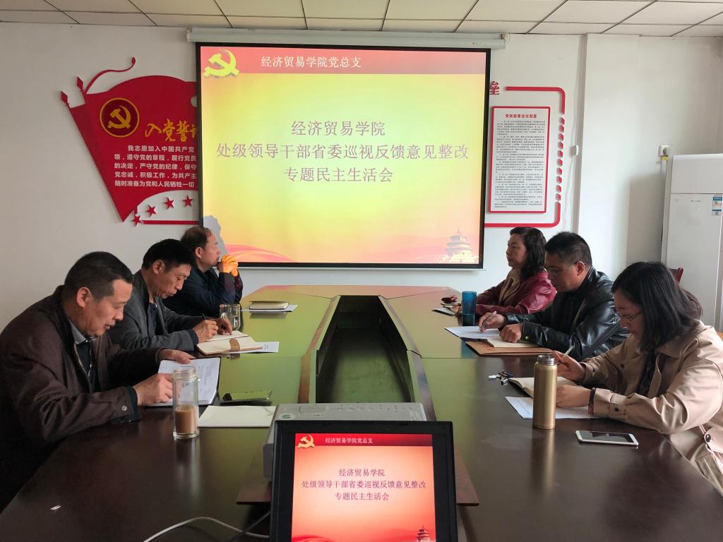 根据学校党委的统一部署,按照《关于召开省委巡视反馈意见整改专题民主生活会的通知》文件要求,经济贸易学院党总支于4月30日上午9:00在英才校区教学办公楼216会议室召开专题民主生活会。院党总支书记牛建绥、院长李光、正处级组织员安杰山、副书记田景丽、副院长高敏、孙晓林等参加了会议。会议由牛建绥书记主持。