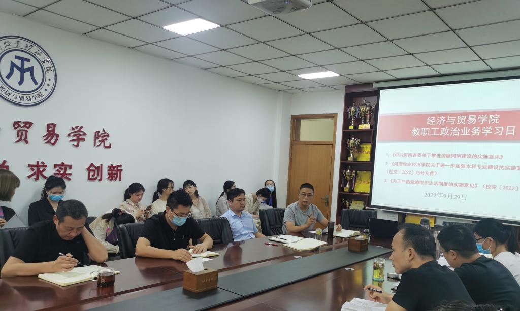 院长李光同志领学了《河南牧业经济学院关于进一步加强本科专业建设的实施意见》,立足v站体育官网专业建设发展的实际成效,对当下本科教学与教育管理出现的相关问题进行了梳理。他要求,一要牢固树立“教学大纲”在教学工作中的纲领性作用,一切教学计划都要以此为遵循进行授课,不能偏离;二要注重科研工作的中心地位,坚持“整体性”思维,把握好个人科研质量和学院整体科研质量的关系,进一步保障学院教学的正常秩序,推进和深化教学改革;三要严格遵守教学纪律,探索改进教学效果,凝炼专业特色,多出亮点,提升才培养质量,为学院学科建设的发展、为学校教育改革的大力推进贡献智慧。