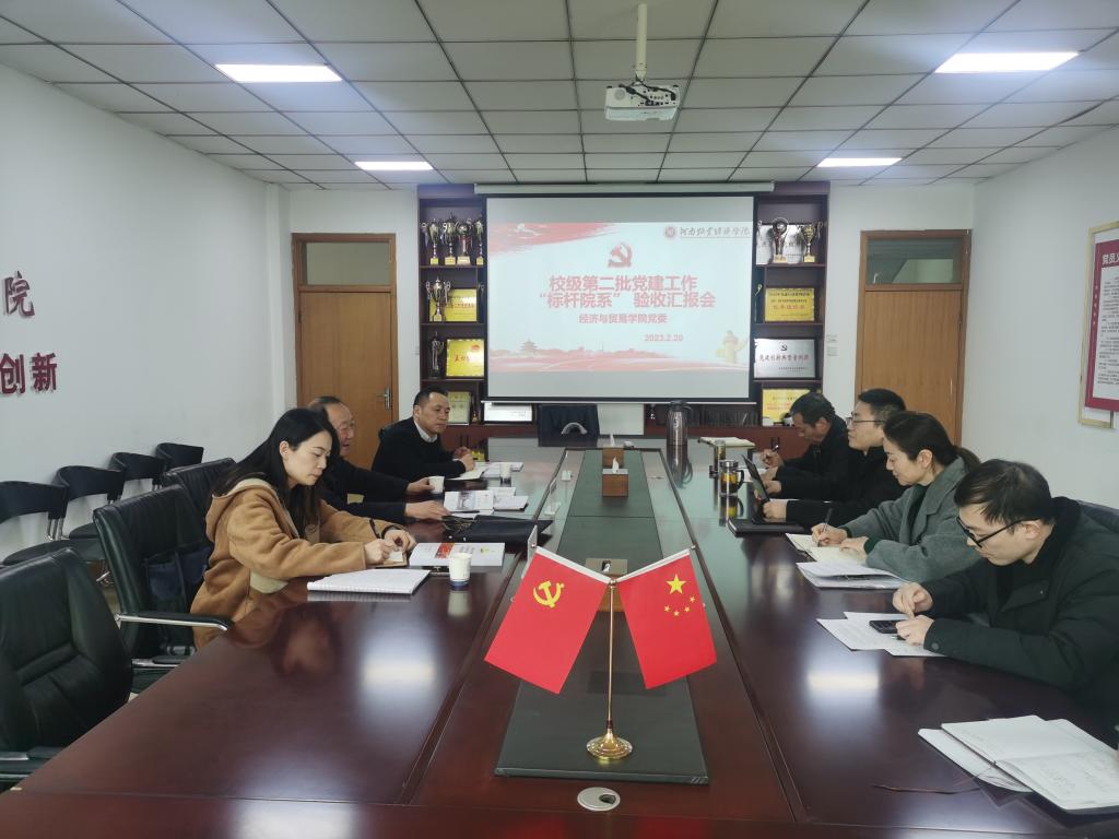 根据《关于开展校级第二批党建工作“标杆院系”、“样板支部”验收工作的通知》(校组〔2022〕58号)文件精神,2月20日下午,学校评审工作组党委统战部部长姬道兴、党委组织部副部长鄢先友、党委组织部(党校)组织科科长刘芸一行莅临v站体育官网,考察验收v站体育官网党建“标杆院系”创建工作。党建工作“标杆院系”验收汇报会在学院327会议室召开。院党委领导班子相关成员、各党支部书记参加会议。会议由院党委书记张松刚主持。