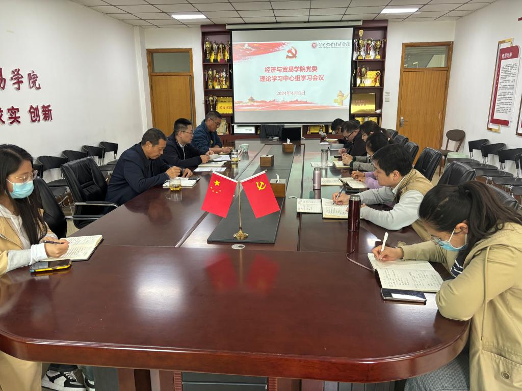 4月8日上午,v站体育官网在英才校区教学楼327会议室召开二级党委理论学习中心组学习扩大会议,集中学习“习近平总书记关于党的建设的重要思想”和《中国共产党纪律处分条例》,联系实际学习领会“学校2024年党的建设和全面从严治党工作会议精神”、“学校2024年宣传思想文化工作会议精神”。学院领导班子成员、党支部书记和部分科级干部参加了会议。会议由院党委书记张松刚主持。