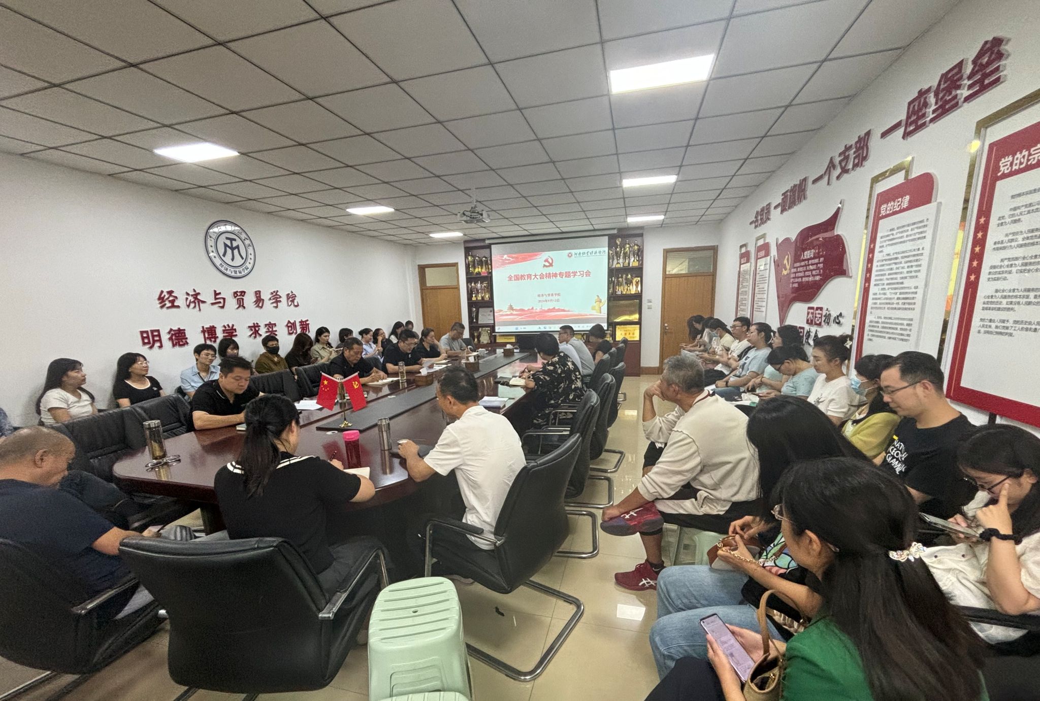 9月12日下午,v站体育官网在英才校区教学楼327会议室召开全国教育大会精神专题学习会,集体学习了习近平总书记在大会上的讲话精神,全体教职工参会。会议由院党委书记张松刚主持。