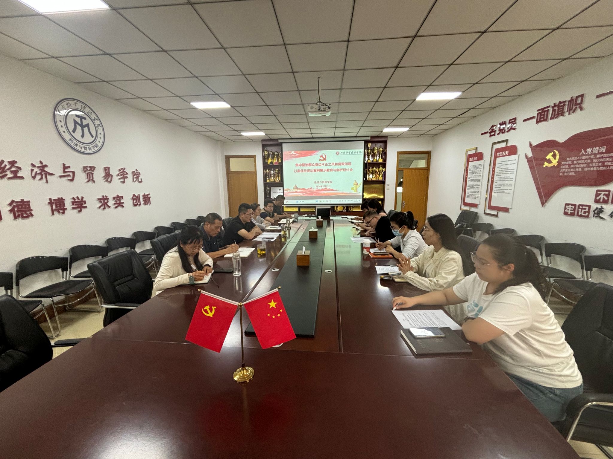 在剖析研讨环节,与会人员逐一发言。大家依据各自的工作职责和实际经验,深谈学习典型案例的体会认识,对照组织要求、岗位需要和师生期待,进一步明确了提升个人思想认识、工作作风、服务意识等方面的努力方向。