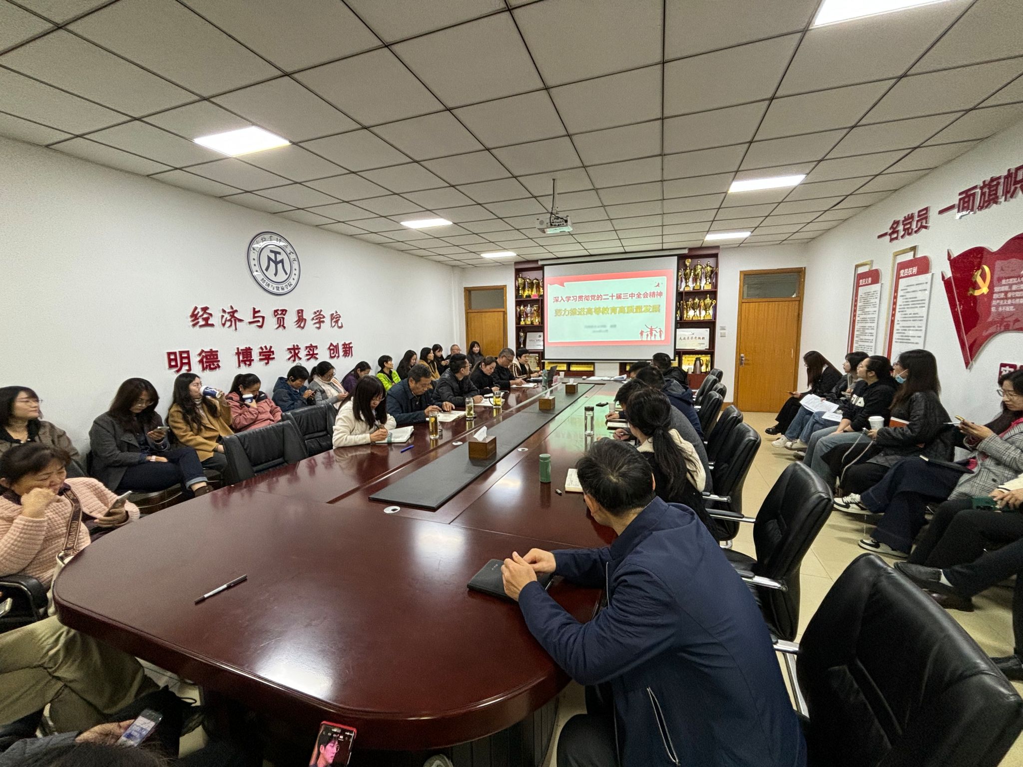 近日,v站体育官网在英才校区教学楼327会议室举行学习贯彻党的二十届三中全会精神专题报告会,特邀学校马克思主义学院副院长郭霞作题为《深入学习贯彻党的二十届三中全会精神,努力推进高等教育高质量发展》的专题报告,学院全体教职工参会。报告会由院党委书记张松刚主持。