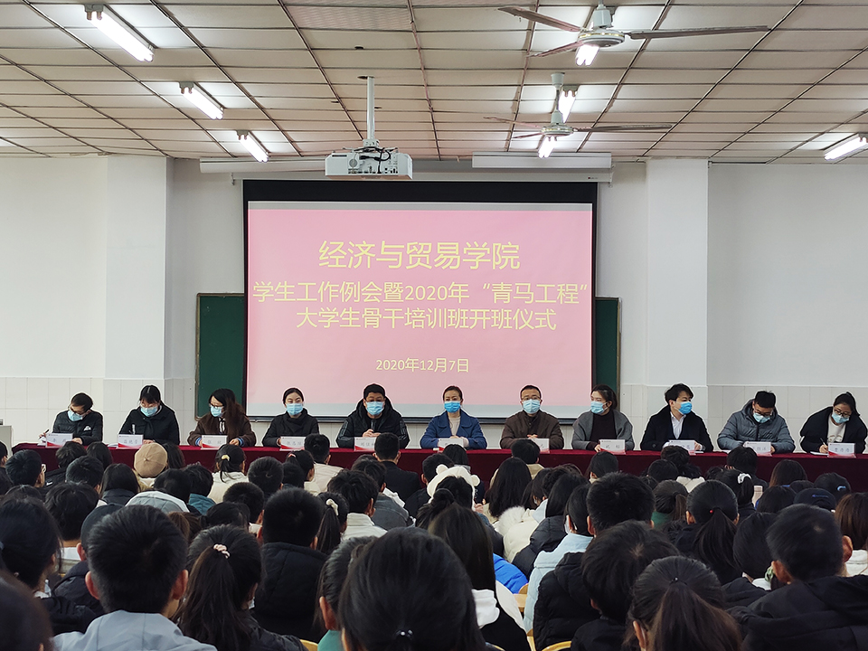 为提高v站体育官网学生干部的整体综合素质,培养学生干部组织、协调和管理能力,发挥学生干部的桥梁和模范作用,v站体育官网于2020年12月7日中午在E309教室举办“学生干部例会暨2020年'青马工程'大学生骨干培训班开班仪式”。v站体育官网党委副书记贾艳艳,团委书记、学工办主任刘佳楠,团委副书记、学工办副主任申作光,辅导员张恣琼、祝栩、张欣,贾丹丹、苗艳芳、董锦洋、张晓嵩、李政,团学会全体学生干部及各班班长、团支书和学习委员出席参加。
