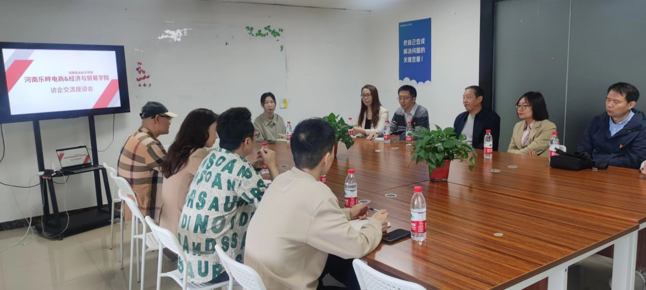 2024年4月12日,v站体育官网院长李光、国际经济与贸易教研室主任尚静,跨境电商教研室主任王建植,课程负责人张永胜、教师赵盈盈、赵浥馨、范艳萍以及物流与电商学院教师薛珂一行8人,到河南乐畔电子商务有限公司访企拓岗并洽谈产学研合作事宜,受到公司热情接待。双方围绕人才培养、产教融合、专业共建、课程共建,科研项目合作,师资支持开展了深度合作洽谈。河南乐畔电子商务有限公司马东光总经理、人力资源部总监孟静、跨境业务部项亚南总经理和马艳涛总经理进行了接待与洽谈。