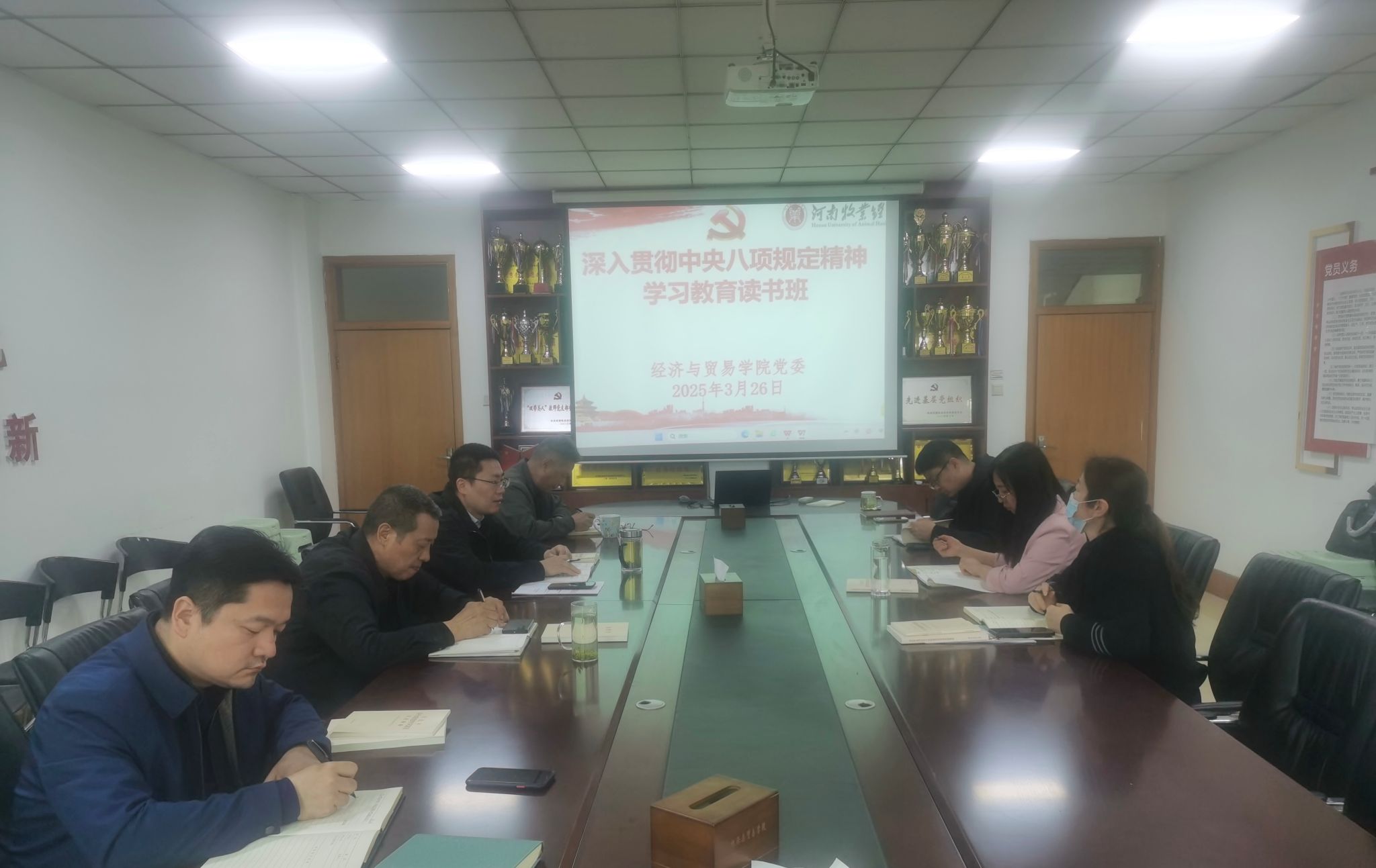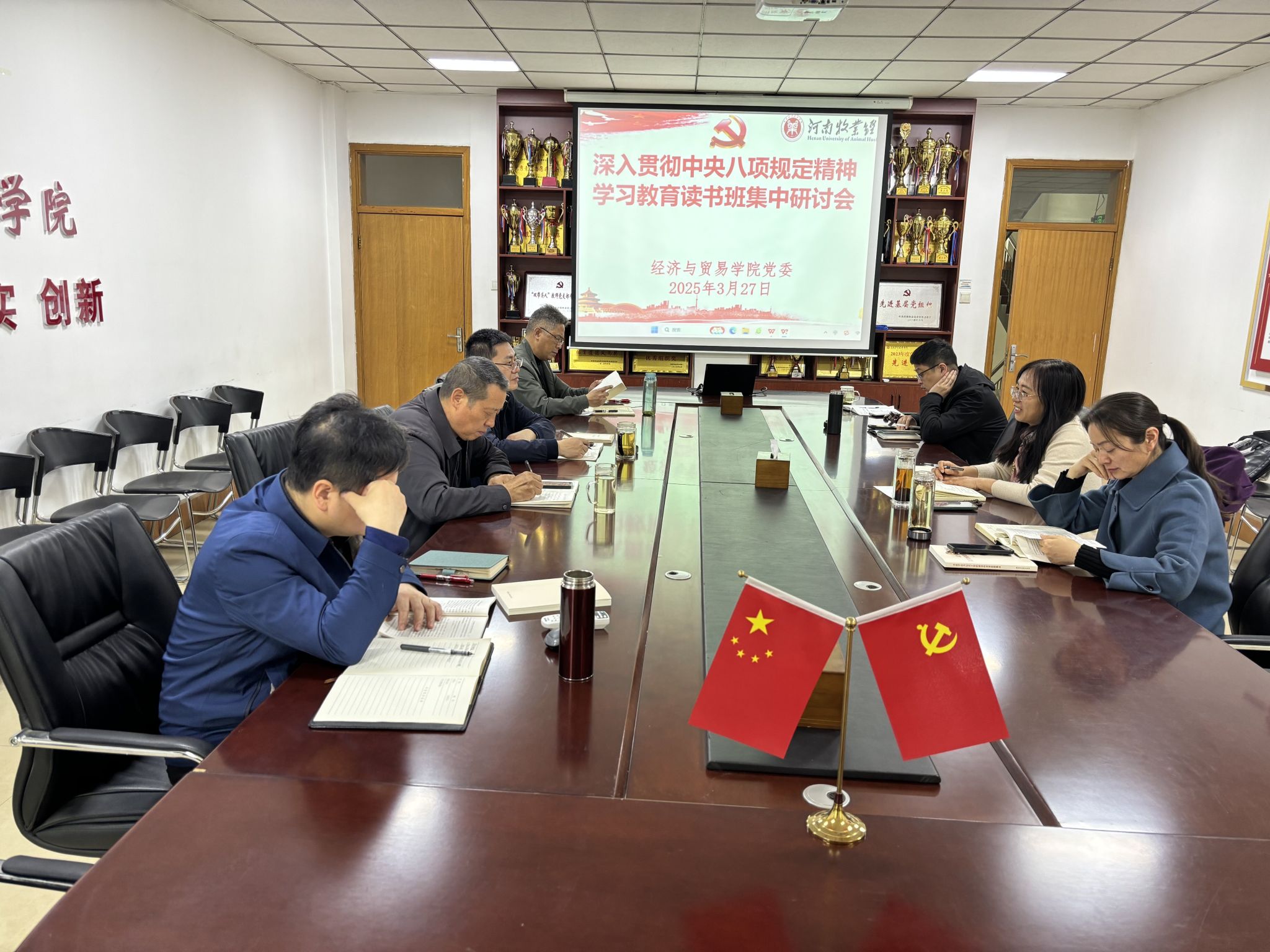 为深入贯彻中央八项规定精神,落实全面从严治党要求,按照校党委统一安排部署,3月26日至3月27日,v站体育官网党委在英才校区教学办公楼327会议室组织开展了学习教育读书班,通过书记领学、个人自学、专家辅导、集中研讨等形式深入学习习近平总书记关于加强党的作风建设的重要论述和中央八项规定及其实施细则精神。院领导班子成员参加了读书班集中学习教育,院党委书记张松刚主持学习会。