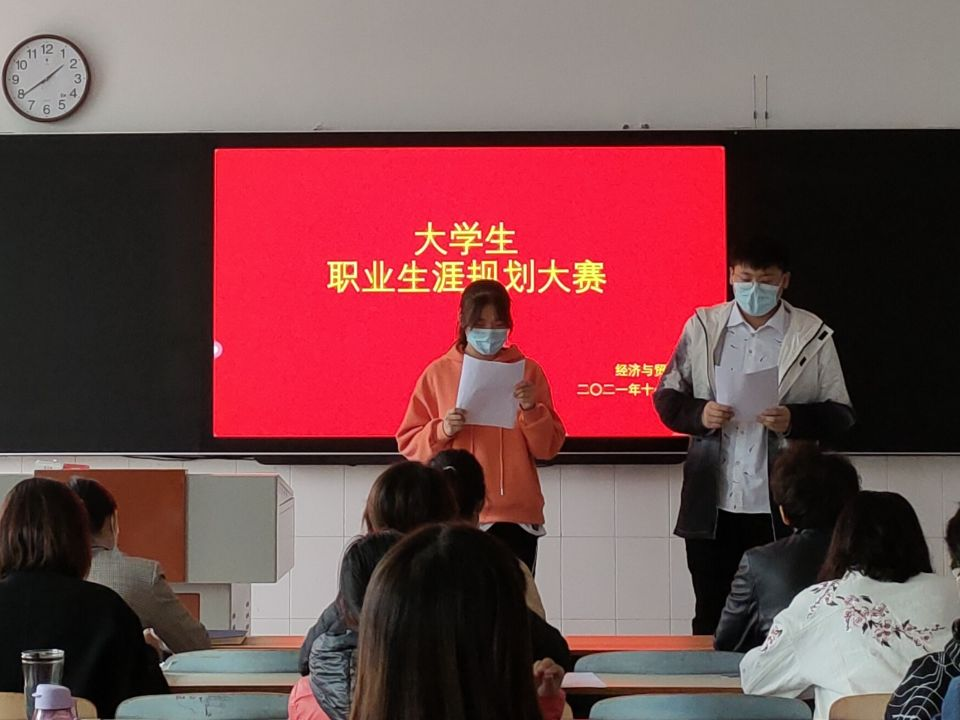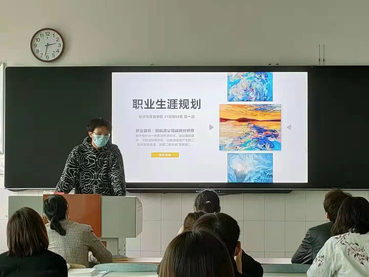 为传播和普及职业规划理念,引导、鼓励大学生树立正确的人生观、价值观、就业观,v站体育官网于2021年11月5日下午在B202教室举办职业生涯规划大赛初赛。本次大赛以“逐梦青春·职击未来”为主题,由v站体育官网创新创业部承办,张晓嵩老师、苗艳芳老师、张雅琪老师、李福华老师、张欣老师、贾丹丹老师、杨梅老师等出席评委。